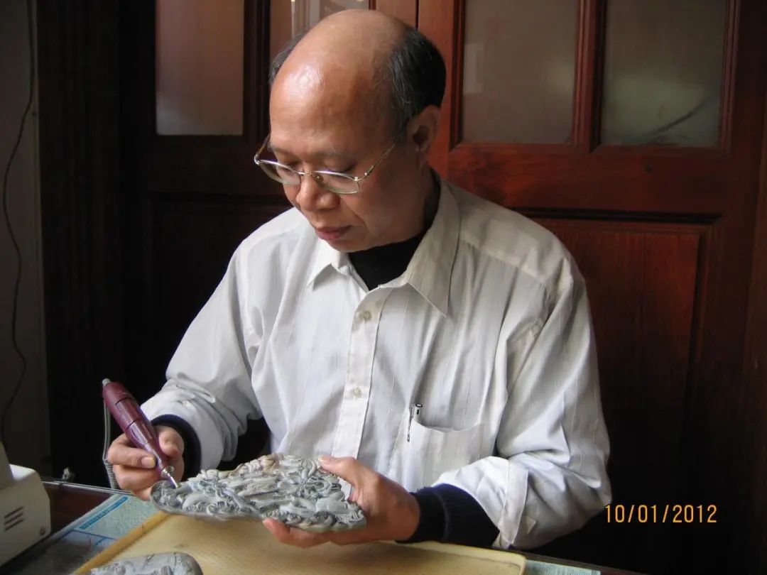 广州玉雕市级非遗传承人刘鹏举,从事玉雕行业30余年,先后跟随中国玉石雕刻大师施禀谋、国家级非物质文化遗产(广州玉雕)传承人广东省工艺美术大师高兆华学习玉雕技艺。刘鹏举最擅长镂空雕刻技法,其作品玉雕《龙霸天下》荣获2014第二届“中国·金艺奖”国际工艺美术创新设计大奖银奖。作品《观海》《墨玉手表》在第十四届中国(深圳)国际文化产业博览交易会上分别获得“中国工艺美术文化创意奖”金奖和银奖。