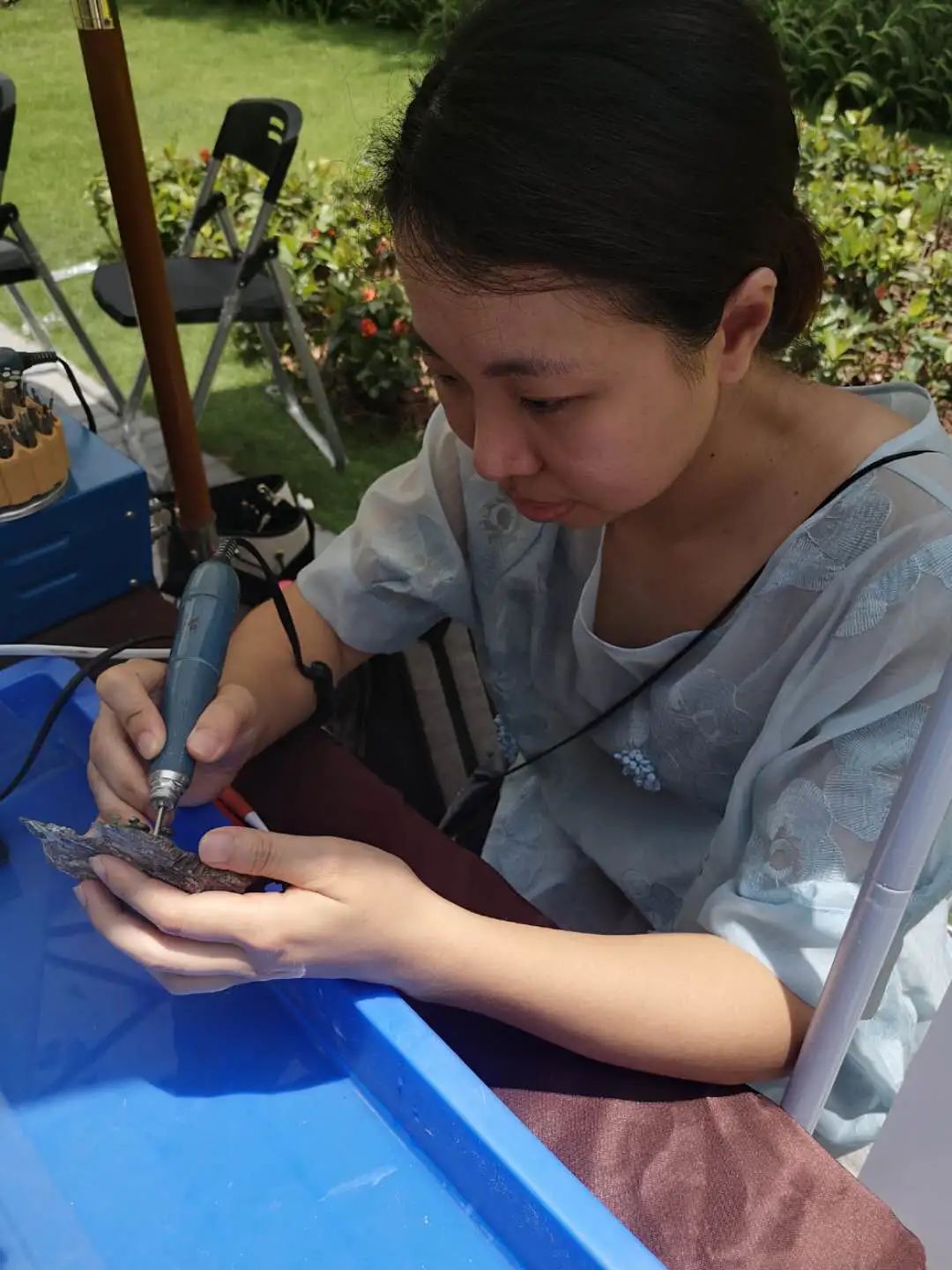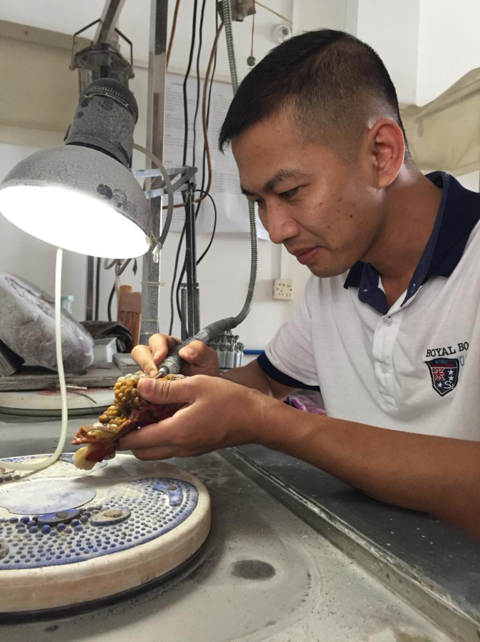 广州玉雕荔湾区级传承人高嘉敏、刘国鹏也都师从高兆华,两位年轻的非遗传承人皆是从十几年前起就在广州市荔湾区高兆华玉雕艺术工作室从事玉雕设计工作。作为年轻的非遗传承人,两位都保持着十分好学、勤勉的态度,坚持将广州玉雕这项非遗技艺发扬传承下去。