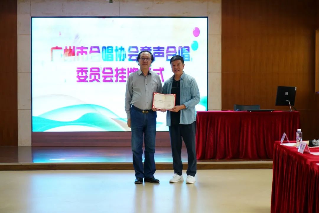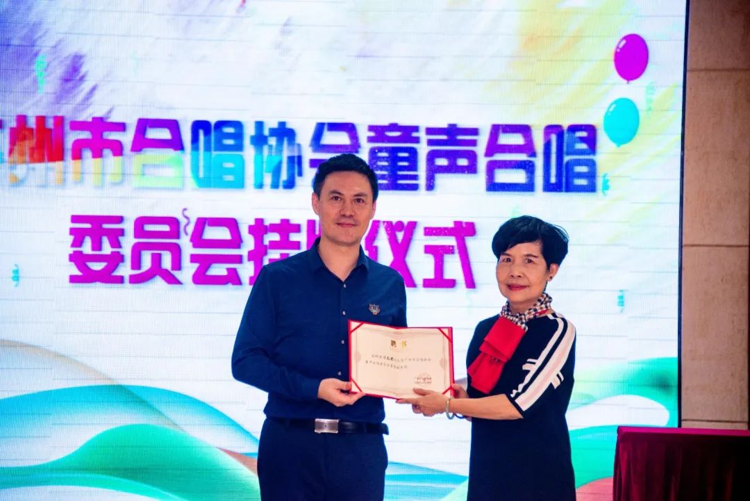 随后,广州市合唱协会苗向阳会长,广东省合唱协会副会长兼秘书长谢妙琼、广州市合唱协会副会长赖元葵等领导以及海珠区少年宫主任潘筱茗共同为“广州童声合唱委员会”揭牌并颁发证书,标志着广州童声合唱委员会正式成立。据悉,这也是全国首个市级童声合唱委员会。