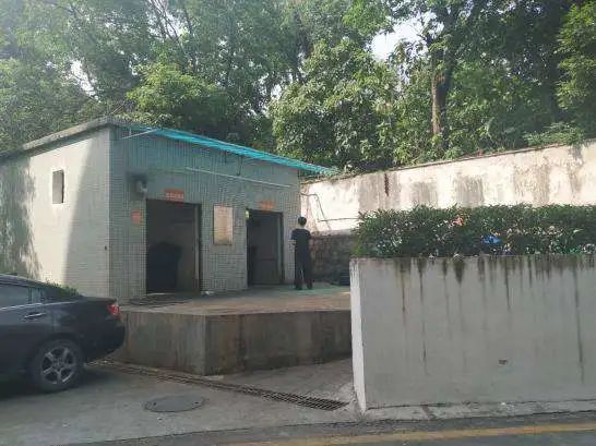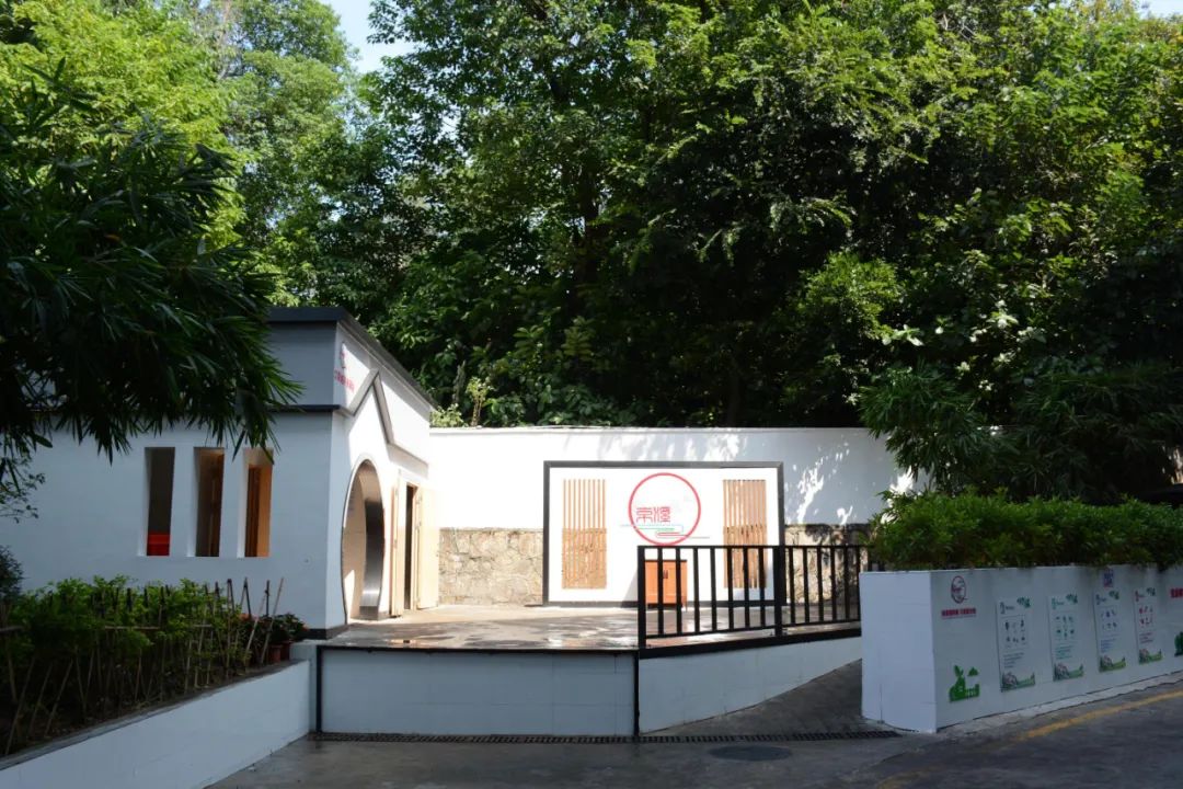 外部铲除翻新了原有垃圾房的受损脏污墙面,增加了屏风、洗手盆和宣教画。灰白两色的墙体与周围建筑巧妙融合,深黑边框雅正端庄,与装饰屏风相辅而成,彰显古朴风雅,四周垂蔓形成天然屏障,掩盖垃圾房内微小气味的同时,给人闹中取静之感。