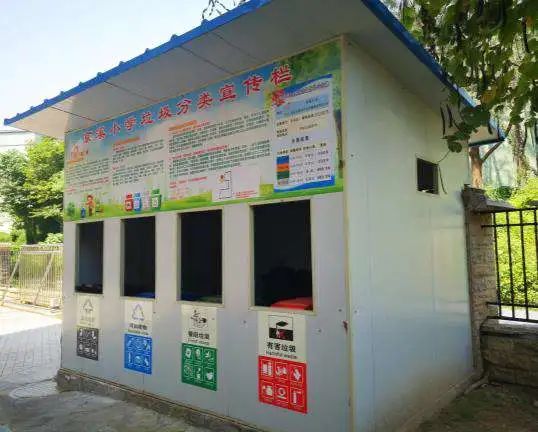 京溪小学地处恒大御府小区正南方,是京溪重要的宣教阵地。校内共有两处分类驿站。垃圾收集房处于广州市白云区怡新路御府新街1号位置,充分考虑小学生的身高特点,投放口位置较低,并采用推拉设置,增加小朋友投放过程的乐趣。