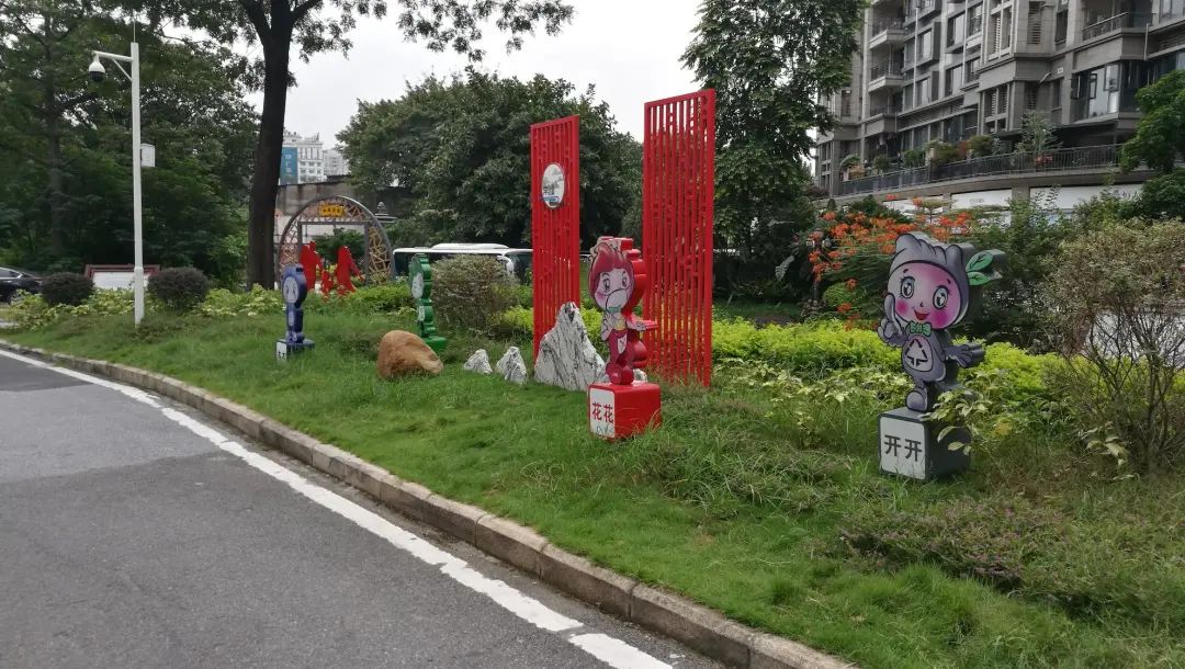 党群服务中心门口草坪处增添“木棉花开”四个具有羊城垃圾分类特色的公仔,与周围环境融为一体,对附近休闲娱乐的群众起到潜移默化的宣传作用。