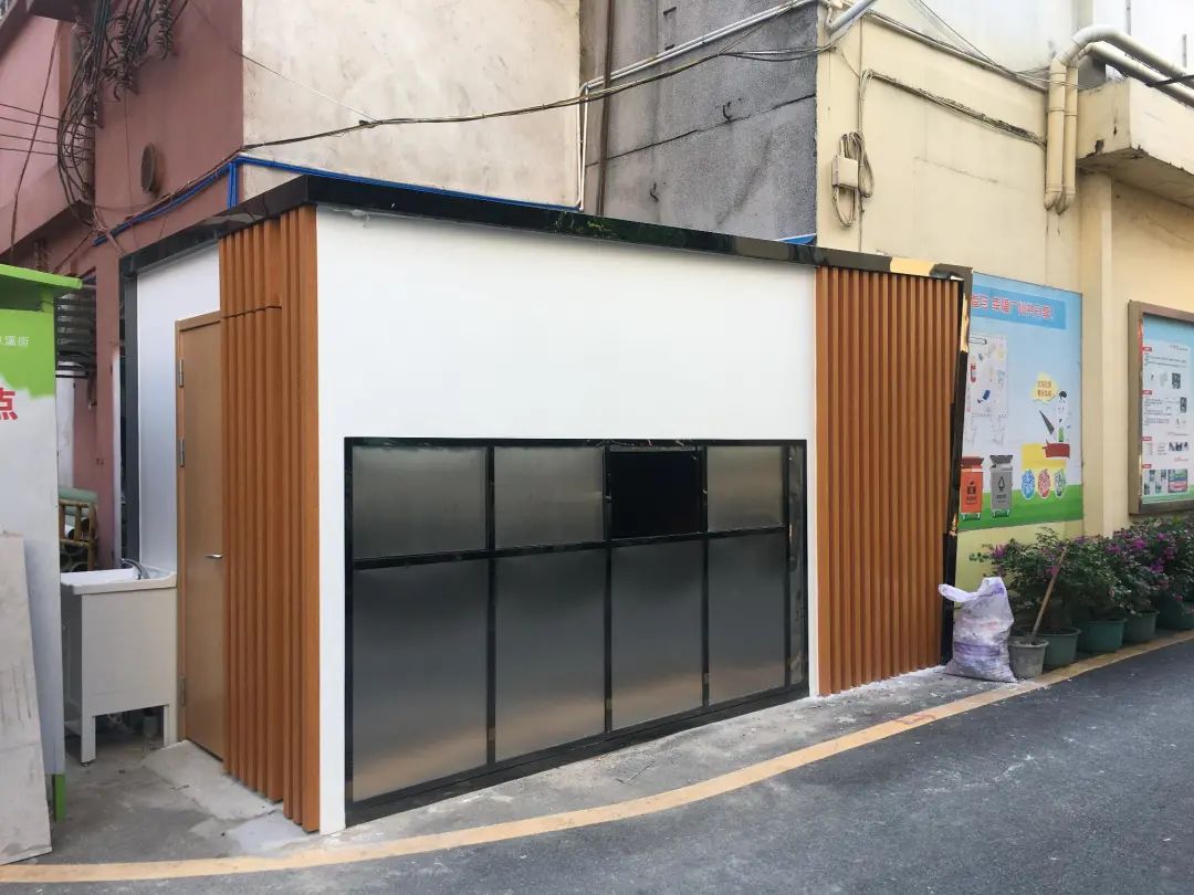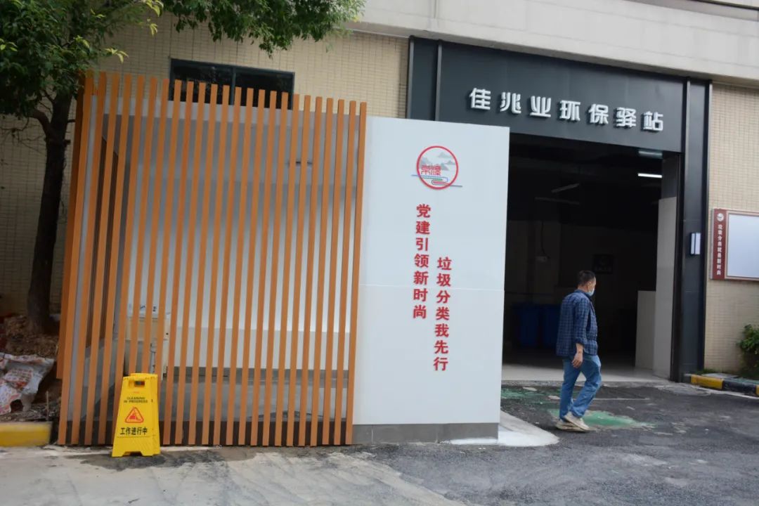 佳兆业小区是京溪重要的居民生活区之一。驿站在原有的垃圾收集房处,刷新墙面,增加环保驿站标识,提高可辨识度。