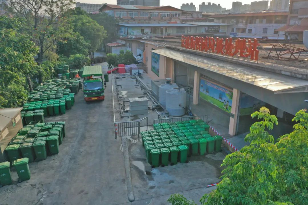 厨余垃圾处理站占地约500平方米,站内洗桶、除臭设备齐全,从源头杜绝各类细菌、污染的滋生。通过将分类收运来的厨余垃圾,用机器进行破碎、脱水、发酵、烘干处理后,废水经由专门渠道排进处理池二次处理,其它油脂物质与固体残渣作为化工产品原料和化肥处理,处理站日均可处理10吨厨余垃圾,最终达到垃圾减量的目的。开放式的垃圾处理管理运行模式,也变相成为一个居民参观点、特殊教育基地,让大家能够近距离了解厨余垃圾处理全过程。