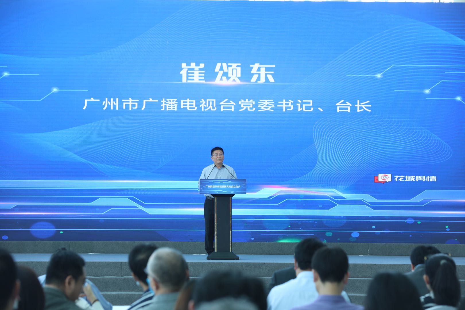 10月27日下午,广州网络舆情数据研究院成立仪式在广州国际媒体港举行。中共广州市委宣传部副部长、市委网信办主任陆志强,中共广州市委网信办副主任苏健,广州市互联网行业党委专职副书记陈小文,广州广播电视台台长崔颂东,广州广播电视台总工程师滕建新,广州广播电视台副总编辑安勇等,及各市直单位(部门)、各区相关负责人出席成立仪式。