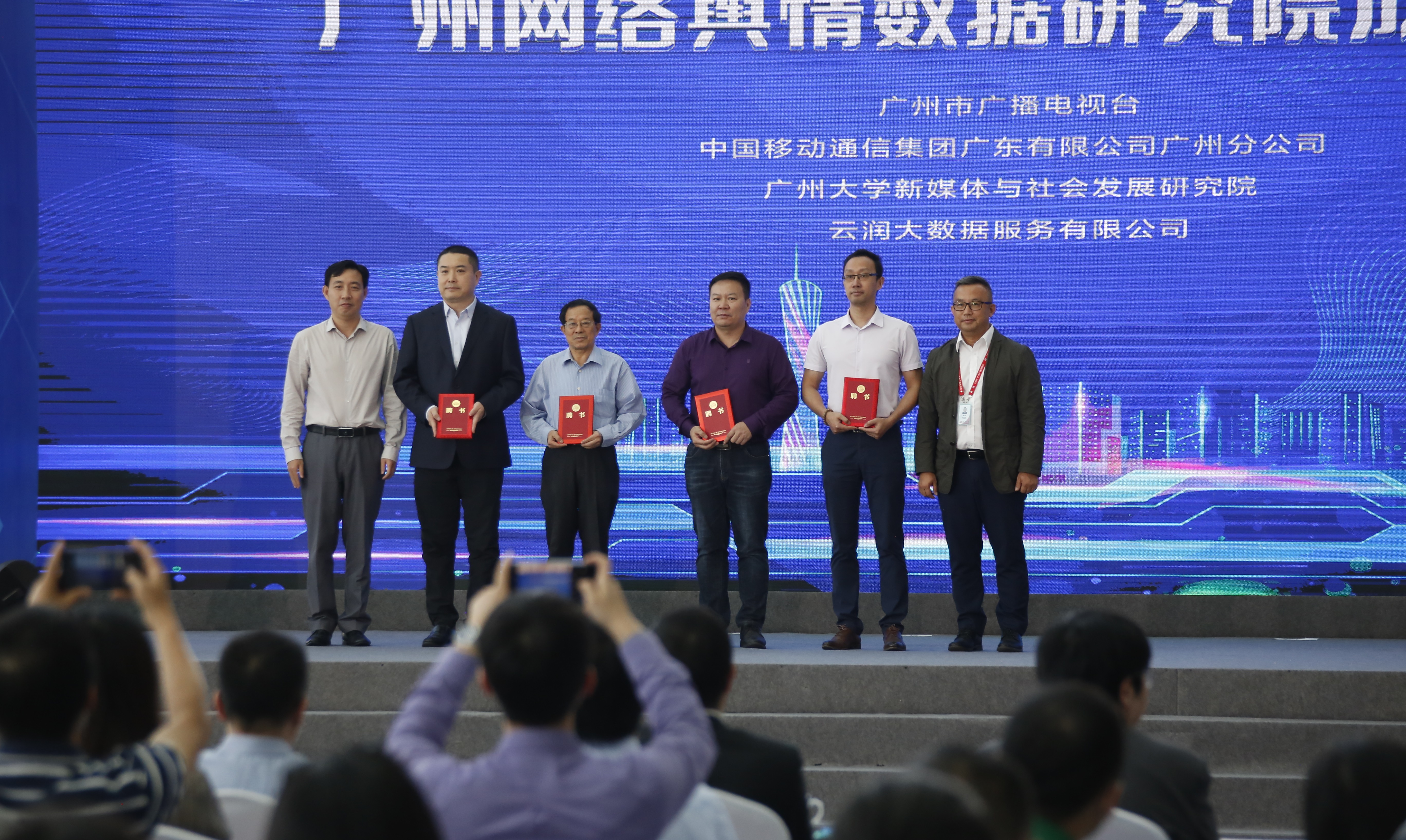 崔颂东台长在现场介绍了研究院的相关建设情况。研究院是以市委网信办为指导单位,由广州广播电视台牵头,聚合高校学术机构、互联网数据技术研发团队、移动通讯数据运营机构等资源组建而成的创新型智库机构。成员单位有中国移动通讯集团广东有限公司广州分公司(广州移动)、广州大学新媒体与社会发展研究院、云润大数据服务有限公司。有望填补广电媒体舆情数据服务市场空白,为媒体融合创新提供新机制、新工具。