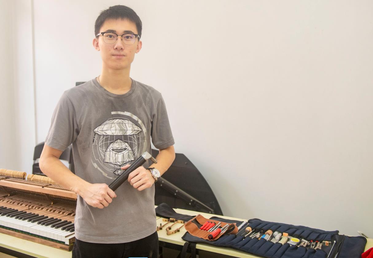 大学期间,吴奇洲要学习乐理学、乐器学、乐器木材学等课程,也要学习钢琴调修、演奏技能课、乐器制造工艺等专业课。