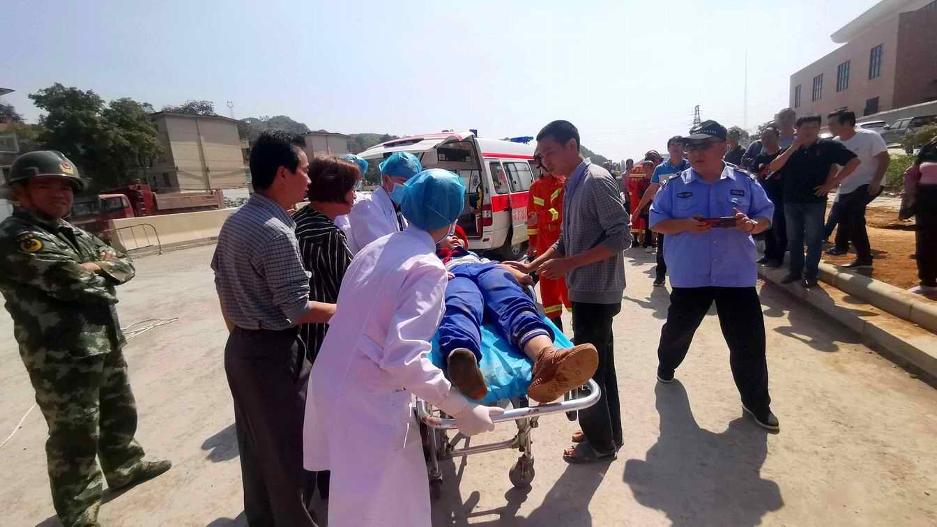 12时15分到达现场后,指挥员安排指战员清空现场群众,利用强光灯观察井内情况并喊话确认井内被困人员的具体情况。井内被困人员为附近学校学生,精神状态良好,脚部发生骨折,未出现较大伤口。