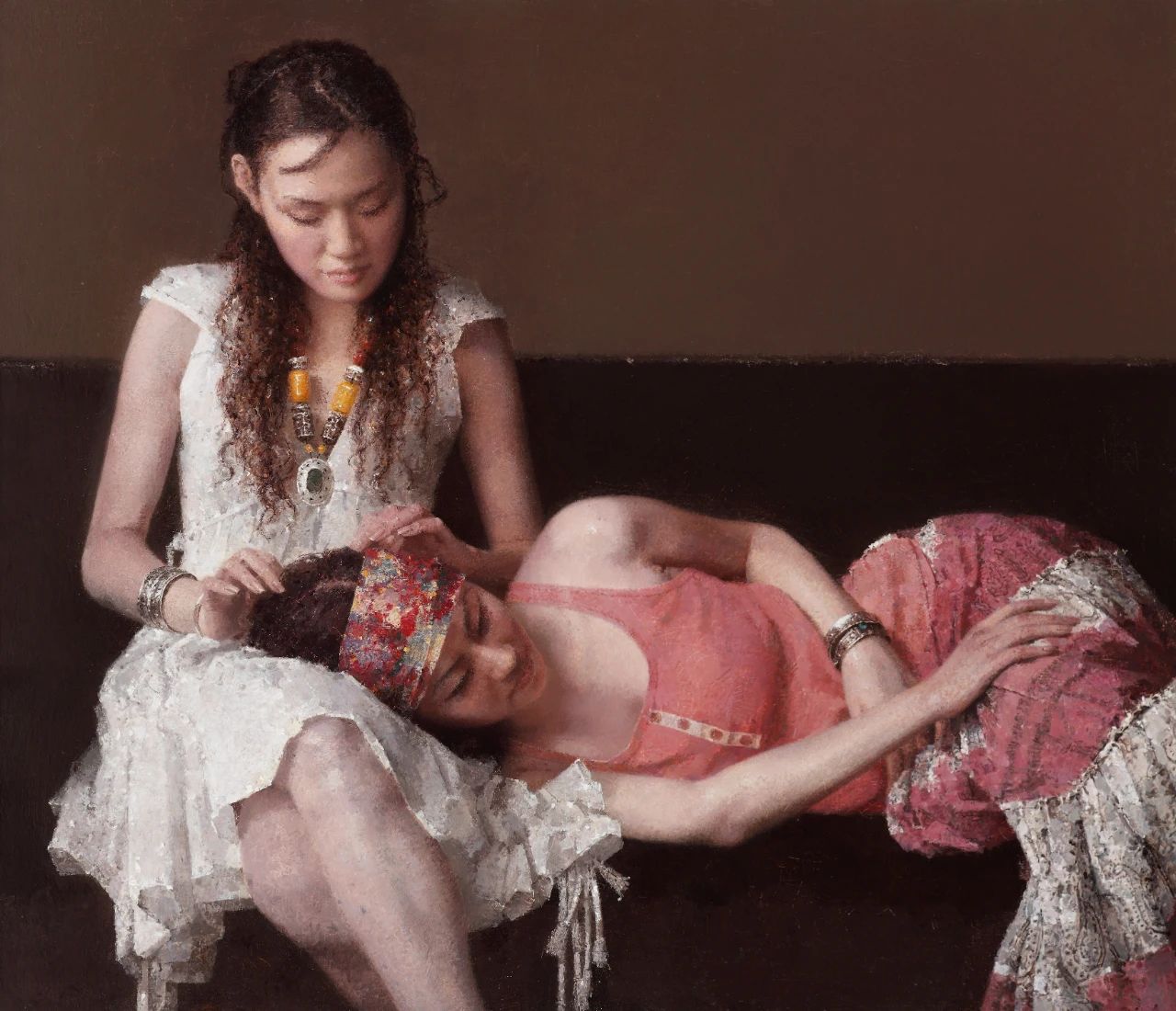 罗文勇在创作中注重将自身的生活体验与人物内在的精神世界相互结合的表现方式,作品凝重、典雅,以古典主义的表现技法和和谐、严谨的形式追求一种庄重和永恒精神的表达。