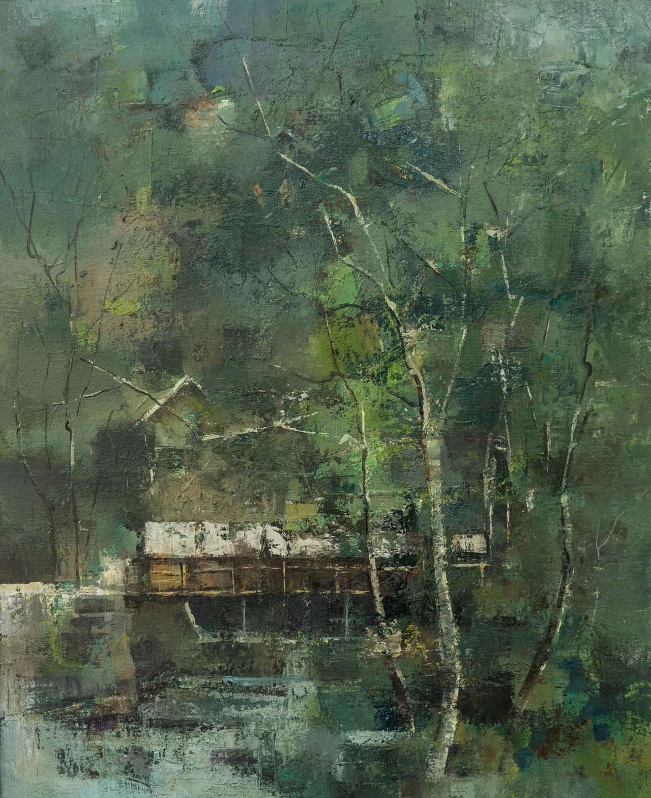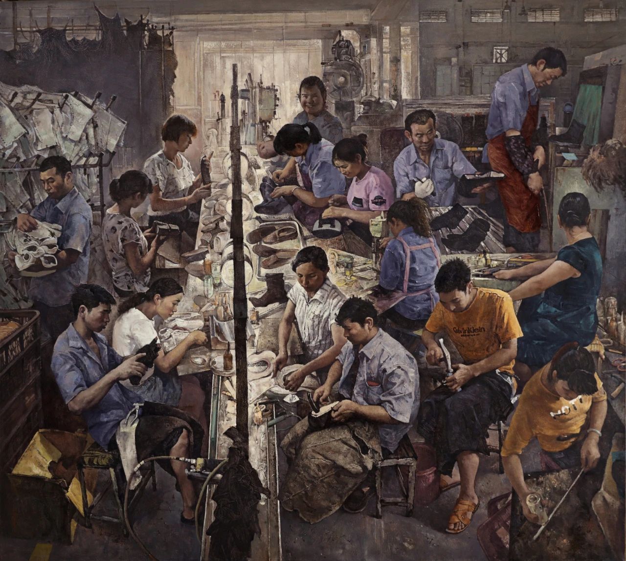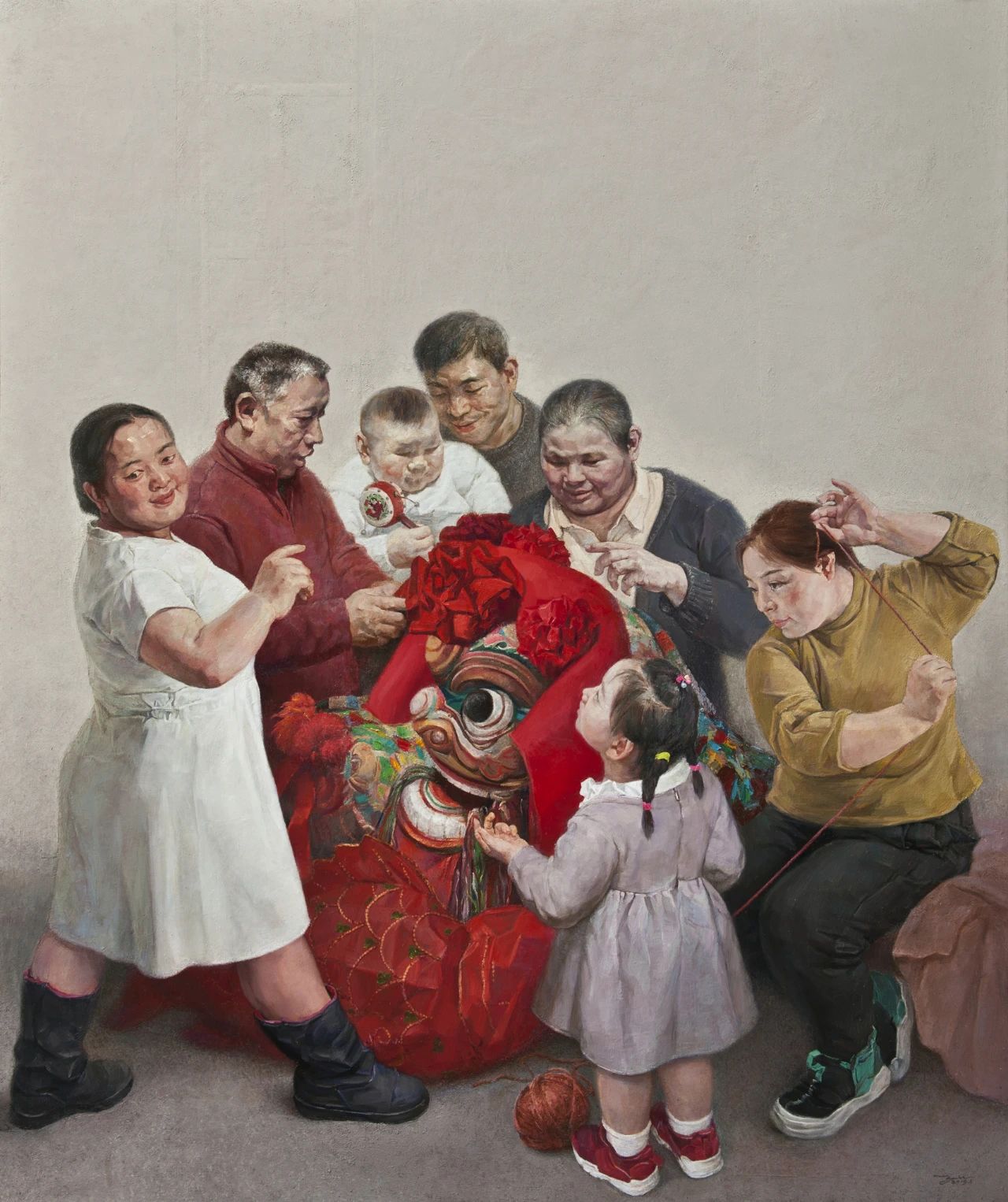 刘颖悟的创作中没有宏大的叙事,作品刻画的大多是自己熟悉的农民生活与草根文化,塑造出朴实幽默的人物形象。刘颖悟在绘画技法上受到古典绘画的影响,具有传统油画写实功底,对场景情绪渲染能力也很强。他的作品中,坦诚不加掩饰的人物场景充满了艺术家的人文主义关怀,此次展出的作品《守护》就表达了作者对于守护与传承传统文化的赤子之心。