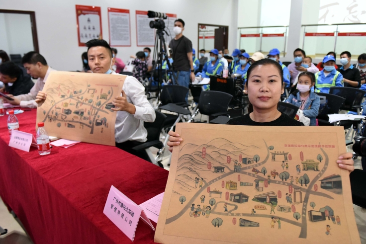 街坊们有了垃圾分类示范线路手绘地图