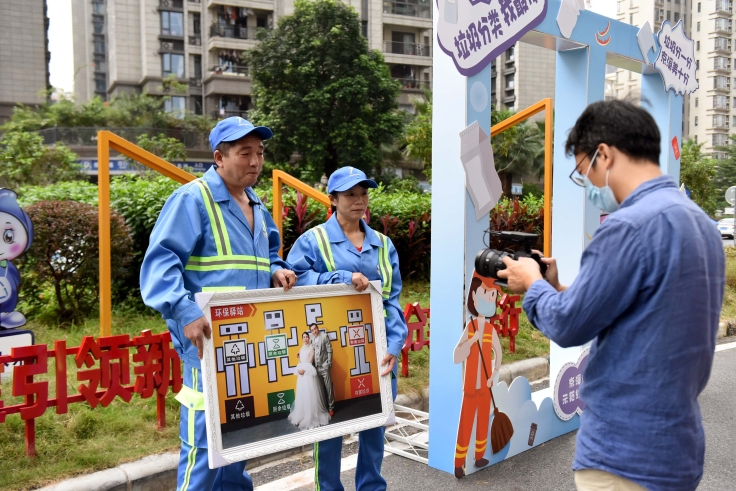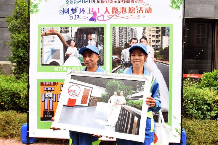 “帮助环卫工人们追忆芳华、在他们工作的地方重温新婚甜蜜,十分温馨也很有意义。”京溪街相关负责人介绍,此次活动帮助环卫工人夫妻拍摄婚纱照,表达了对环卫工人的敬意,同时感谢他们在打造京溪街垃圾分类示范点做出的努力。