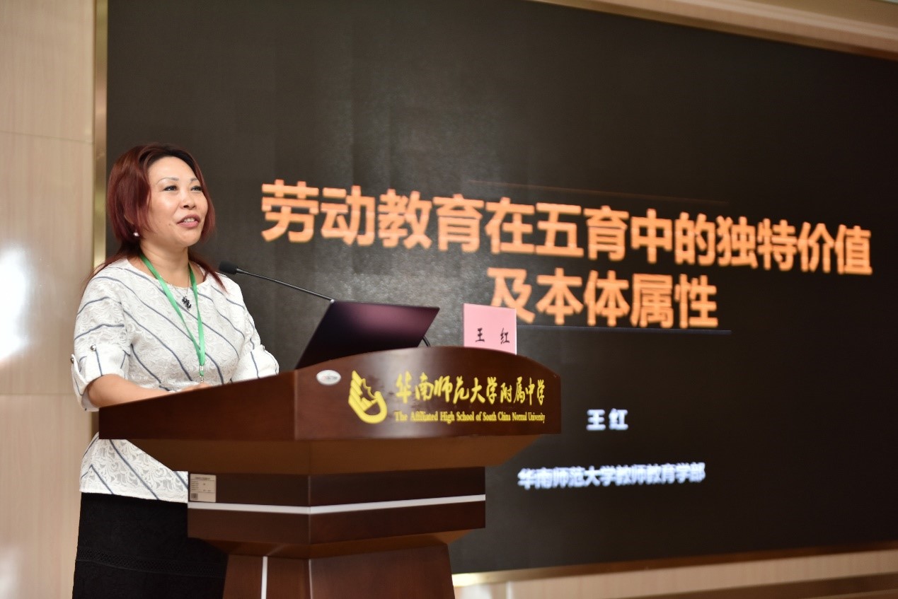 10月30日上午,该研讨会在华附拉开帷幕,专家大咖作专题报告。华南师范大学教授王红以“劳动教育在五育中的独特价值及本体属性”为主题解读劳动教育政策。她认为,劳动教育具有不可替代的价值,要强调独特性,不能只看到其对其他四育的服务功能,“在劳动教育的实践中,我们必须优先追求劳动教育的本体价值,就是让学生爱劳动、享受劳动,让劳动成为一种生存方式”。