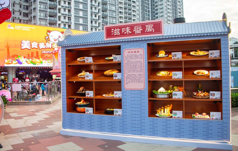 据了解,为挖掘番禺每个镇街的代表菜和地道美食,传承和弘扬番禺饮食文化,今年广州国际美食节,番禺区在16个镇街设置分会场,推出形式多样、主题多元、独具地方特色的美食活动,评选出“一镇(街)一名菜”。“滋味番禺”展示屋所展示的菜品和点心正是番禺16个镇街各选取的一个代表。