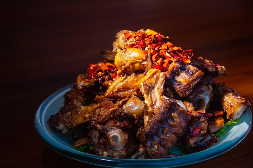 手抓牛骨酱香浓郁,油而不腻,肉耙软而香醇。要做好手抓牛骨必须要调好卤汤,而调卤汤必须要有上好的黄豆酱,再按一定比例加入香料,才能做出这道菜。