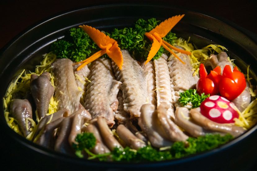 采用新鲜嫩口的鹅掌翼,配合上等黄姜丝、花生油等材料,通过师傅巧手慢火烹调,利用黄姜丝带出鹅掌翼的鲜味,外脆内嫩,口感极佳。