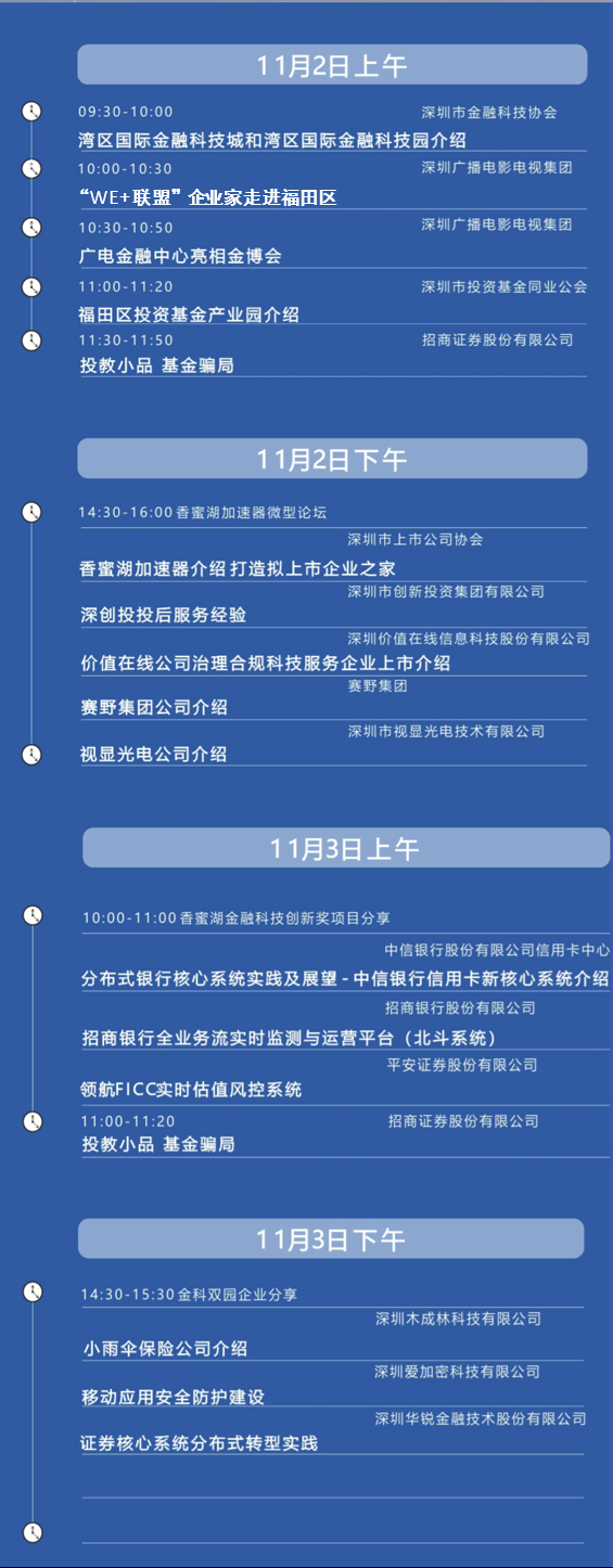 第十四届深圳国际金融博览会(以下简称“金博会”)将于2020年11月2日—4日于深圳会展中心(福田)1号馆举行。本届金博会将以“科技助力金融,金融服务实体”为主题,以展览为主,结合各类论坛开展相关配套活动,展示内容涵盖基金、银行、保险、证券、金融科技、商业保理、担保、汽车金融等各金融领域的最新技术、产品和服务。