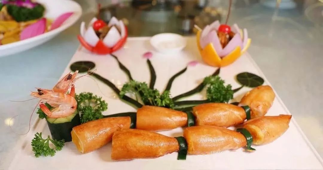 2018年的广州国际美食节曾评选14家“番禺美食地标”,其中就有莲花山粤海度假村御景阁餐厅的翠莲风韵(海宝金沙酿鲜鱿筒)。