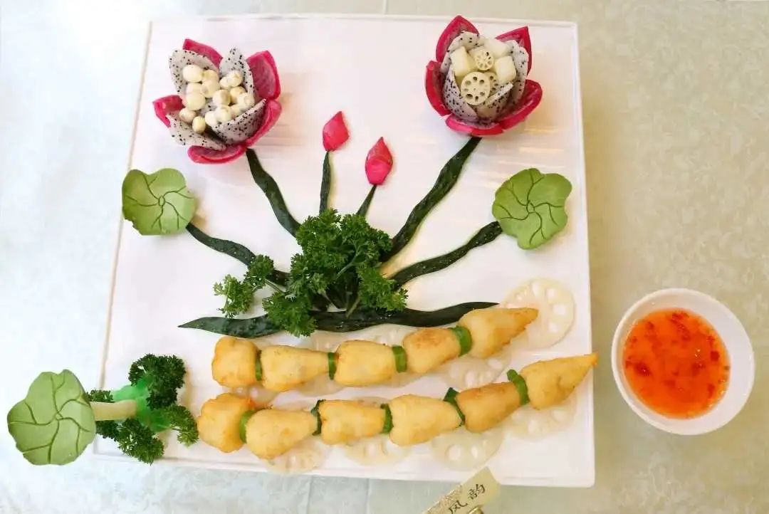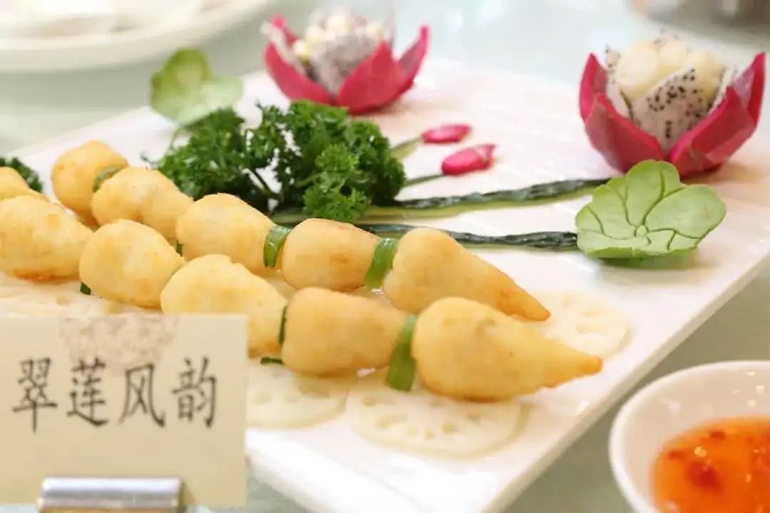 “翠莲风韵”不仅意境优美,反映了莲花山荷塘美丽的景象,也将莲花的美丽身姿和莲藕的节节高升表露无遗。用心的选材、精心的制作,尽显粤菜清鲜味美的特点。
