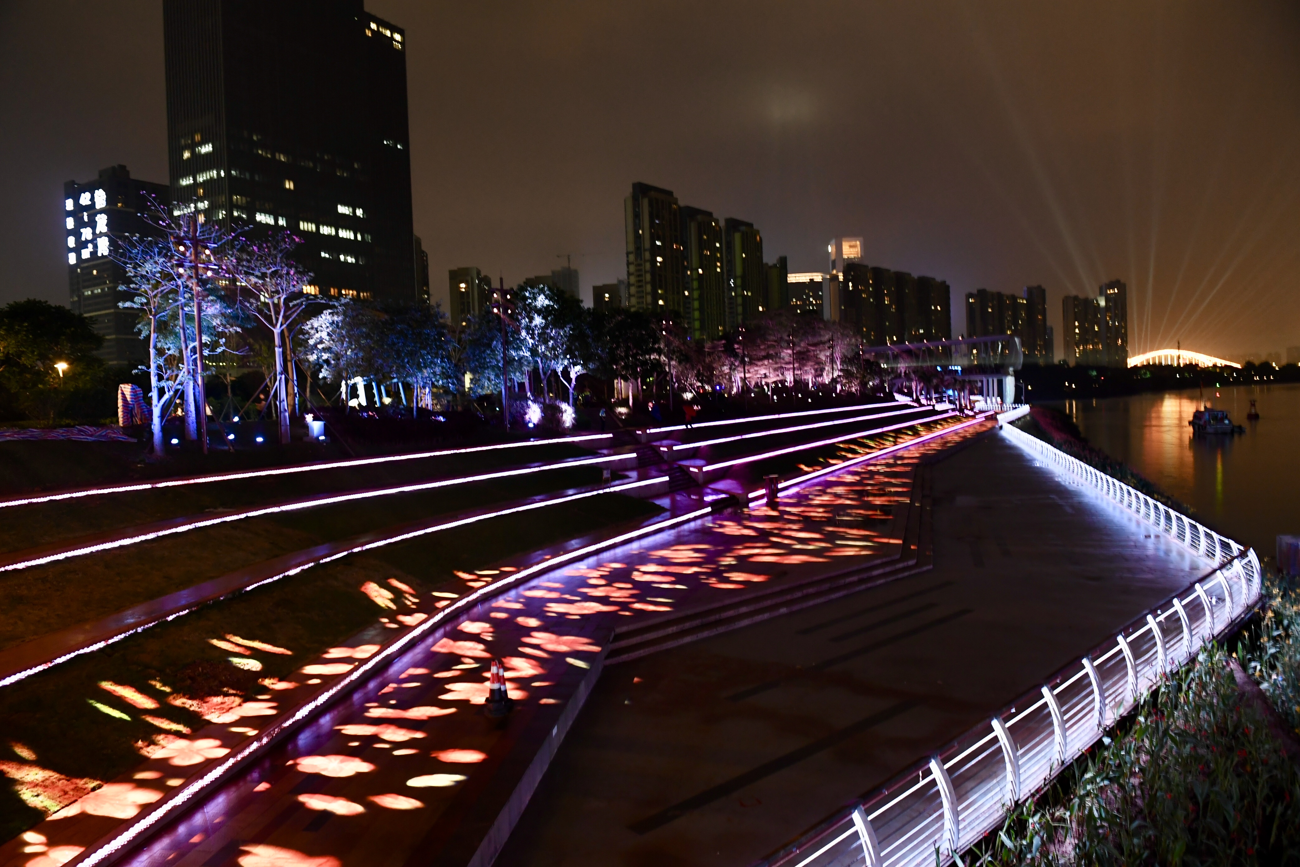 在乐从一岸,被灯光“妆点”的坊塔、河滨公园、世纪莲等在夜里凸显动感和韵味,成功吸引了登船嘉宾的目光。