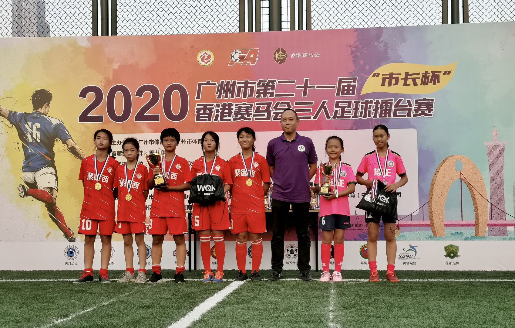 当日,7个组别的冠军全部诞生,他们分别是小学甲组海印青少年足球俱乐部A队、小学乙组大沙头小学(红)、小学女子组聚德西小魔女、初中组东山小哥、高中组海印青少年足球俱乐部、大学组大野狼、公开组Seven Eight。
