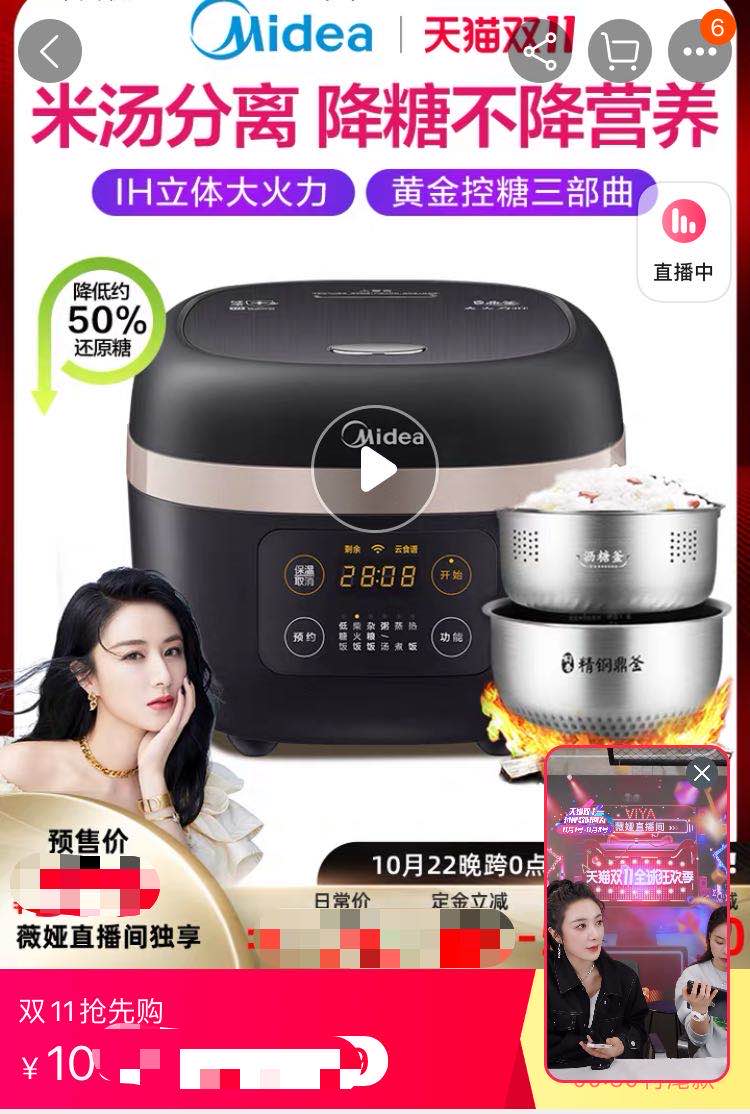 “双11”期间,美的掀起了全球购物狂欢节,还邀请到了一些流量明星作为“品牌官”线上带货。另外,在薇娅等直播达人的直播间里,也能看到美的的品牌和产品露面,布局广泛。