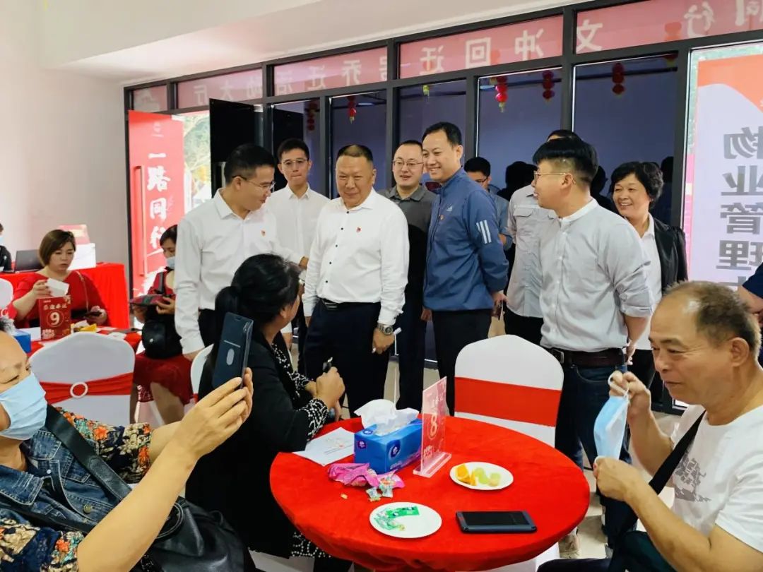 图:村民们向文冲街道、文冲社区的领导们分享收新楼的喜悦。