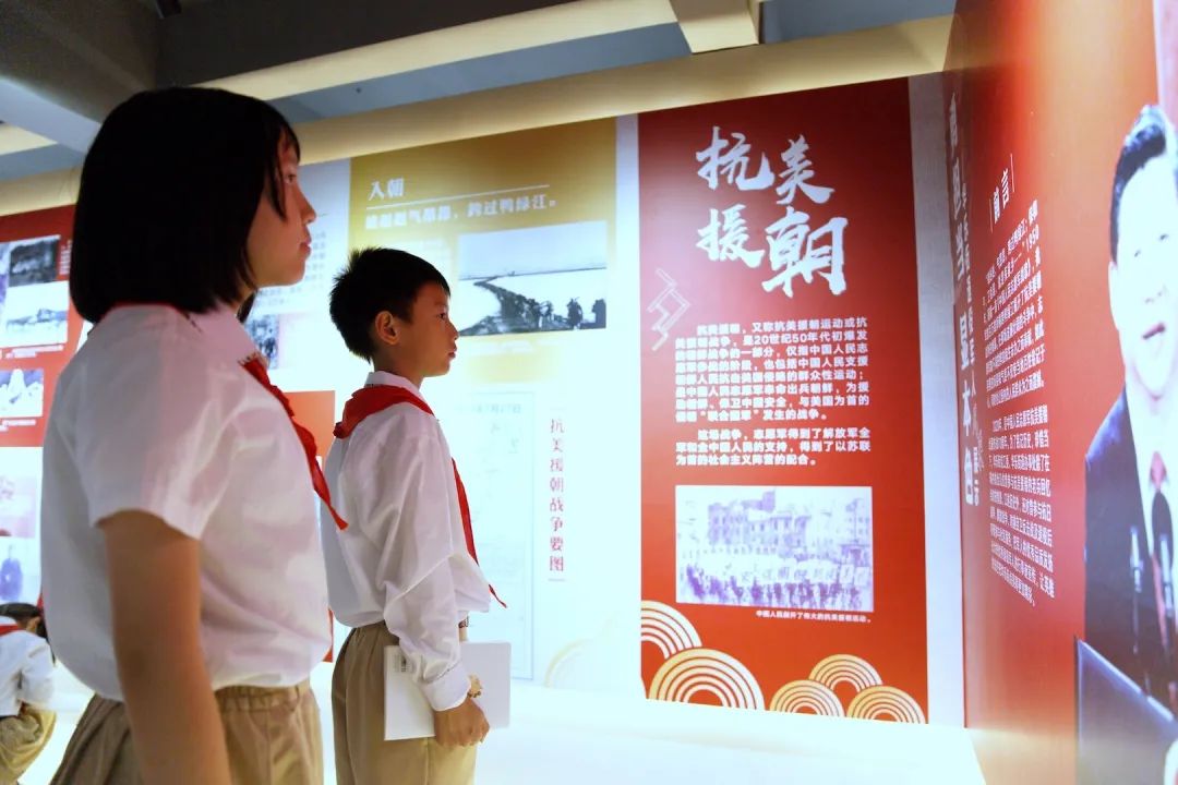 日前,为了让青少年们更好地学习、继承伟大的抗美援朝精神,铭记历史,致敬英雄,做好红色传人,中星小学十余位学生代表在大队部的带领下参观了位于淘金路上的抗美援朝退役军人风采展览。