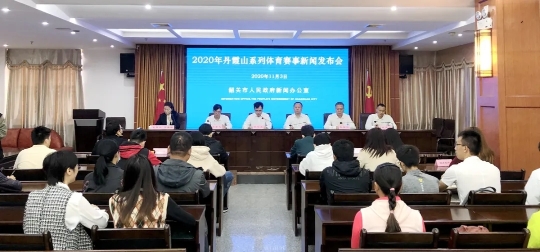2020年11月3日上午,韶关市人民政府新闻办公室召开2020年丹霞山系列体育赛事新闻发布会。韶关市人民政府副秘书长李志兵、韶关市文化广电旅游体育局副局长胡强、浈江区人民政府副区长罗奕文、仁化县政协副主席陈喜年、丹霞山管理委员会副主任侯荣丰出席新闻发布会并回答记者问。