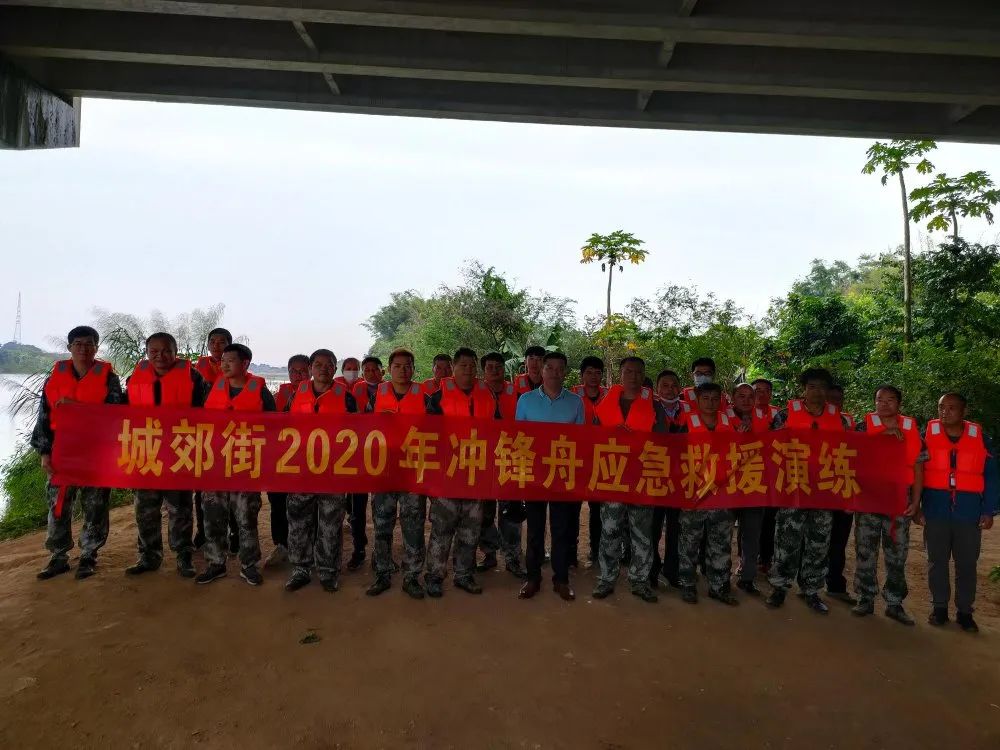 本次演练由城郊街三防办牵头,会同街党政办(应急办)、河长办、武装部、冲锋舟应急救援队、安监中队、社会事务管理科、宣传办、城管中队、来穗人员和出租屋管理中心等街三防指挥部成员单位及镇北社区、河滨北社区、东风村委等相关单位共同举办。城郊街党工委委员曾榕增任总指挥,共44名工作人员参加演练。