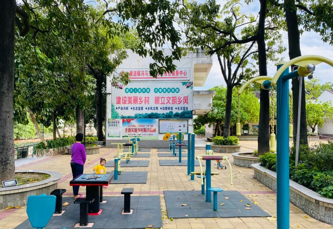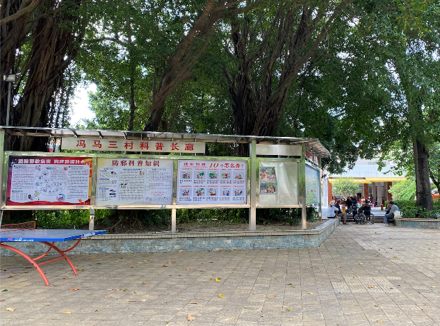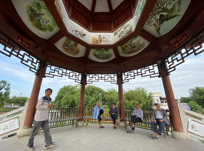 再往里,就是冯马三村的大舞台,大舞台旁的百年榕树下老人家们在乘凉闲聊,悠然自得,古香特色的丹心亭记载着冯马三村的故事......