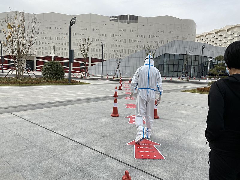 索尔佳透露,她和教练是在10月20日从德国法兰克福出发的,次日抵达上海浦东国际机场。在机场接受了第一次核酸检测之后,她乘车来到隔离酒店。在酒店逗留四天之后,她和教练乘坐组委会安排的大巴,经过了13小时的车程抵达办赛城市山东威海。她坦言,如此长的车程还是挺辛苦的。