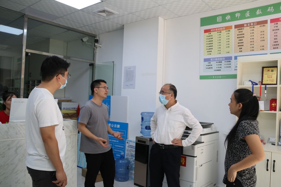 此外,检查组一行还到书店、玩具店、早餐店等商铺检查防疫情况,要求经营者一定要戴好口罩,做好自身的防护,店铺要干净整洁,并定期进行消毒,同时也要提醒进入店铺的人员戴口罩和测量体温。
