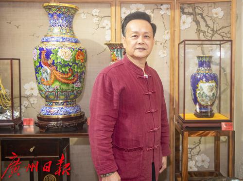 “非遗传承的关键点在于,年轻人从事这一行,能不能靠它生存。”杨志峰告诉记者,广州珐琅用料成本高、工序多,打铜胎、掐丝、点蓝、绘画、烧制、打磨、镀金等工序要学会起码耗时三年,加上外销市场受影响,行业存在人员流失情况。让他稍微欣慰的是,除了儿子的接班,有不少外地年轻人“打飞的”来广州参加工作室的珐琅技艺课程,为期五六天,费用几千元,“愿意花这个成本来学,说明广州珐琅声名在外。”