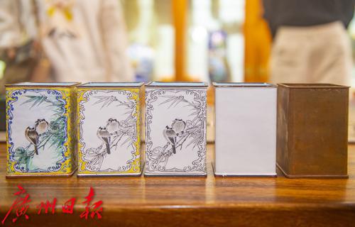 进驻非遗街区前,杨志峰的大本营在花都的一个工业园区内,面向的是较了解珐琅工艺的熟客或藏家。来到永庆坊非遗街区,每天都会有陌生的游客经过杨志峰的介绍,从对珐琅一无所知到基本了解,这是他收获最大的事。“珐琅比较小众,先让大家对它有一个基本的了解。”杨志峰认为,省市对珐琅这个非遗项目的宣传力度在加大,非遗街区就是一个非常好的展示窗。