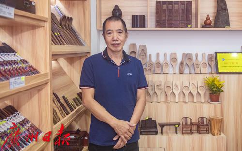 为了改善勉强的局面,在2000年左右机械饼印出现、手工饼印式微时,余兆基就开始另谋产品开发和创新。木梳、木勺、木筷、木摆件、木手串、木抽纸盒……“余同号”凭借琳琅满目、价格实惠、做工精良的小件木制品,在市场上站稳脚跟。按照余兆基的话说即,以其他品类的经营去“养”饼印的传承。而饼印也衍生出新的产品形态,如迷你摆件、饼印相架、相框等,一款名为“一往情深”的鱼样饼印相架是他最得意的创新产品,“在香港售1300元,卖断货了。”余兆基有些自豪。