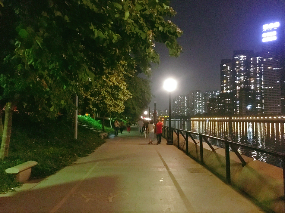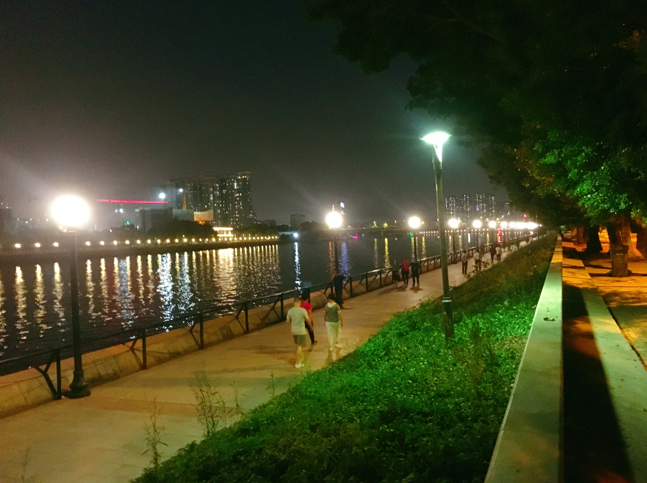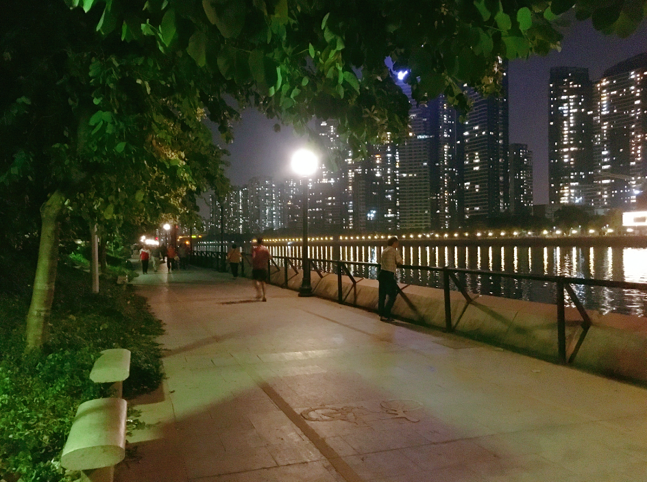 从上个月中旬起,位于该岛东岸一带堤岸绿道的路灯全部通电。小荔发现:与通电前相比,江边的视野环境改善了不少,前来夜跑和散步的市民也明显增多了。