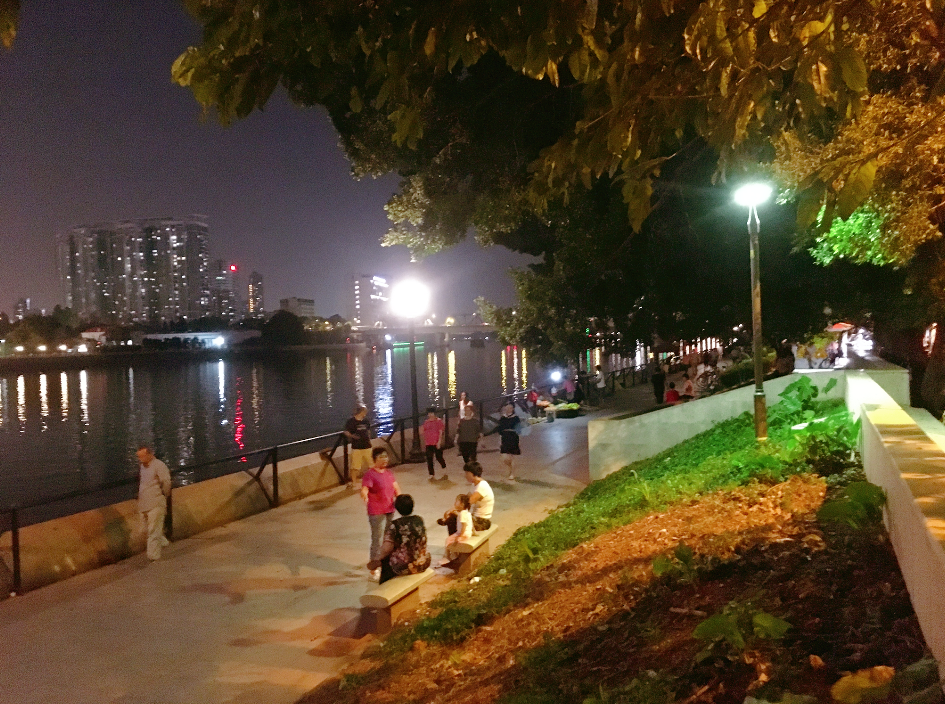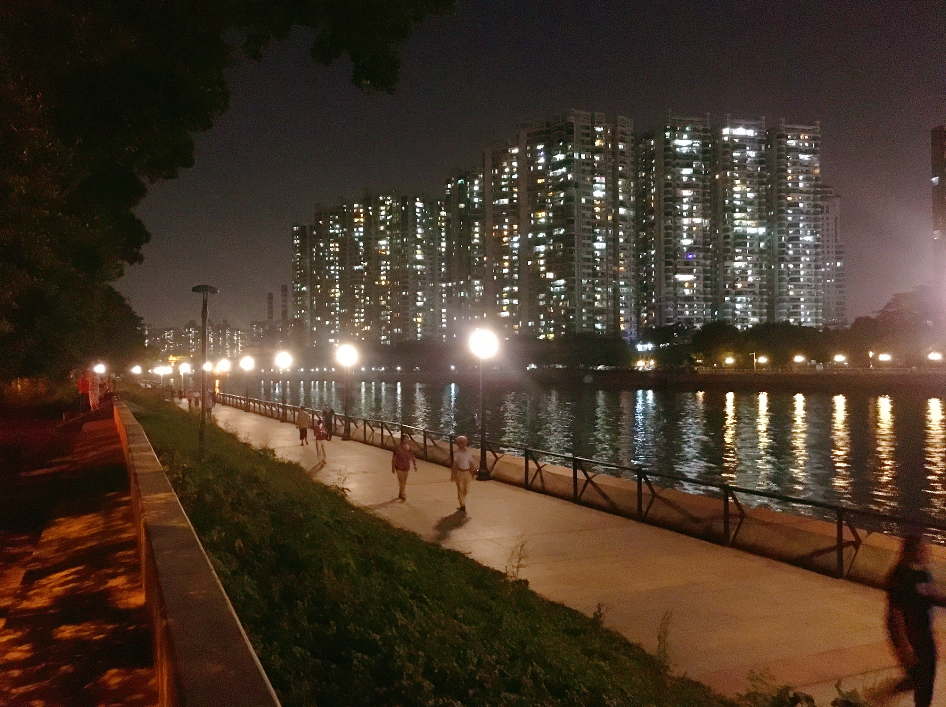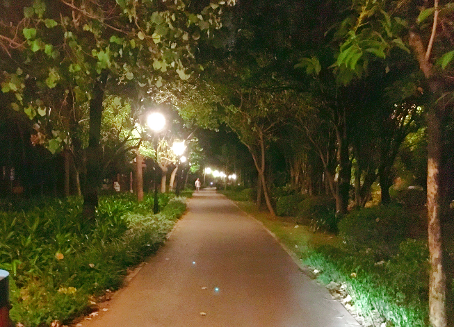 从今年8月份起,公园内安装了新的照明工具,但并没有通电。由于大沙河周边有着几个龙舟基地,晚上有不少前来训练的扒仔,偶尔也有从周边前来散步或夜跑的市民。为了给市民更好的夜间游园体验,从上月起,公园内的路灯全部通电。