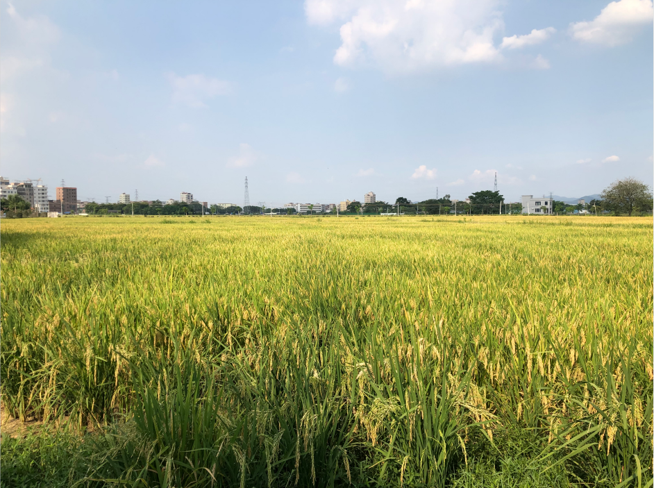 正值金秋好风景,稻花香里看丰年。在秀水村水稻公园内,蔚蓝天空下,一层层稻浪起伏,放眼望去,一片金黄。阵阵微风夹杂着乡间泥土的清新气味,让人心旷神怡。