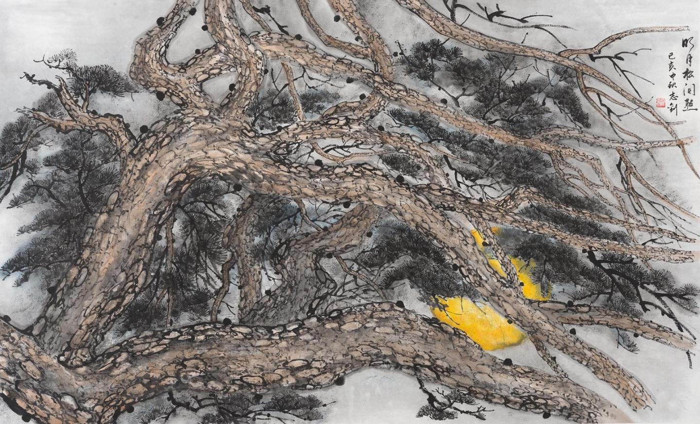 下功夫最多的毕业作品,其素材来自在新会著名景点“小鸟天堂”的写生。画面为傍晚时白鹭纷纷飞回丛林栖息。作品是在梁世雄老师的画室完成的。但从下笔到告竣,一直未能确定题目。
