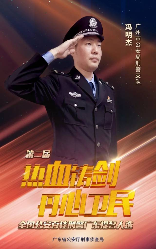 近日,第二届全国公安百佳刑警评选活动正在进行。经过组织推荐、公安部评选确定,广东省共有8位刑警入围提名人选,广州市公安局刑警支队的冯明杰是其中的一位。