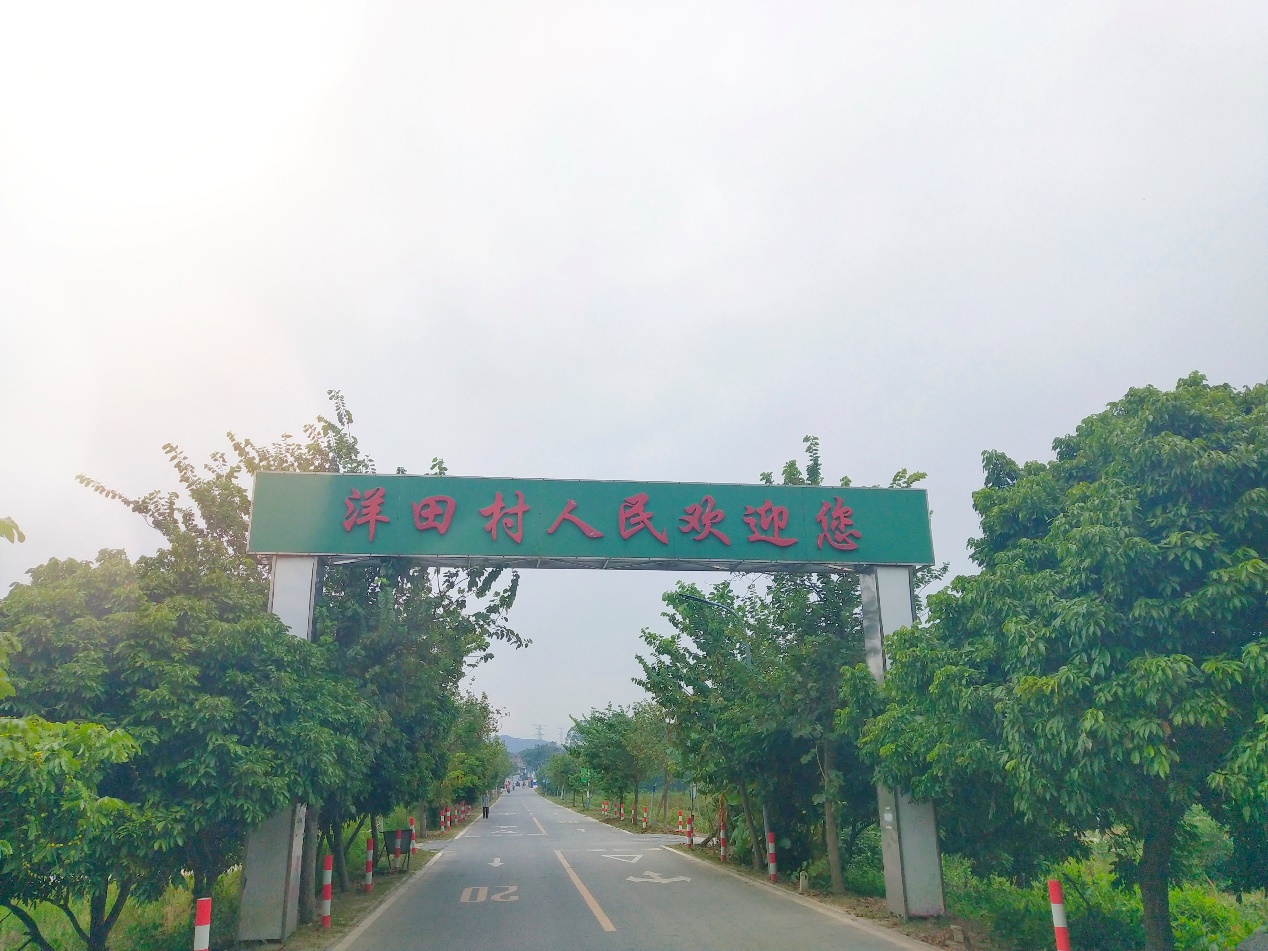 “洋田村人民欢迎你”,当你看到这块绿底红字的醒目牌匾横在平整水泥路上时,就来到了洋田村。洋田村东与增城中新镇山美村接壤,南、西、北面分别与黄埔区的新田村、旺村、迳下村相连。洋田村属革命老区,村内还有1处野生稻自然保护区,是水稻遗传育种等科学研究的宝贵资源,曾为恢复和发展广州市名优特产“增城丝苗米”作出卓越贡献。