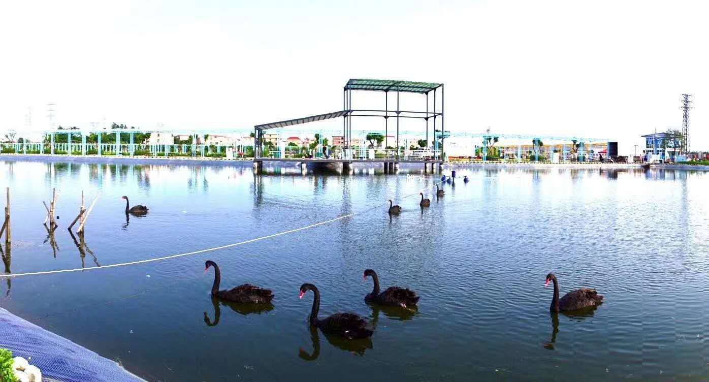 在樂源生態園的小湖內,湖面碧波蕩漾,盪起陣陣漣漪,13隻黑天鵝在湖中遊戲,它們時而曲頸低頭,閑雅勝似仙子,烏黑如緞甚是柔媚動人。