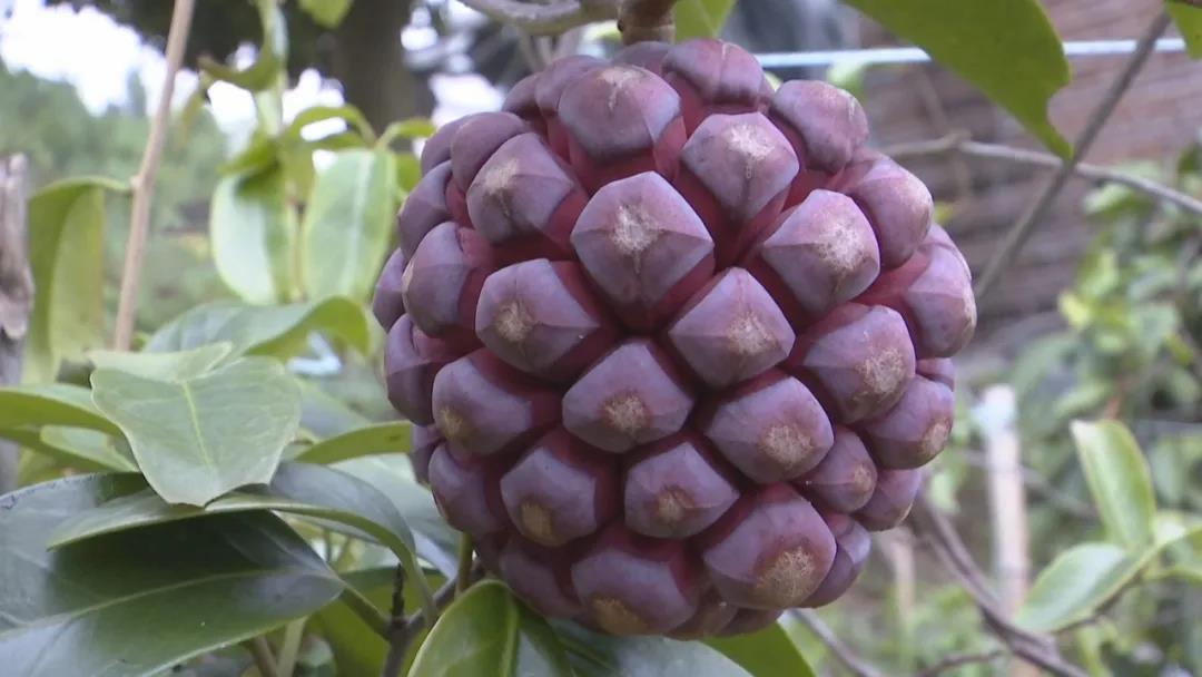 胡伯说,现在已经种了第六年了,一棵有几斤果,产量还不算很高。这个果有近九成熟了,迟几天摘的话会更甜。