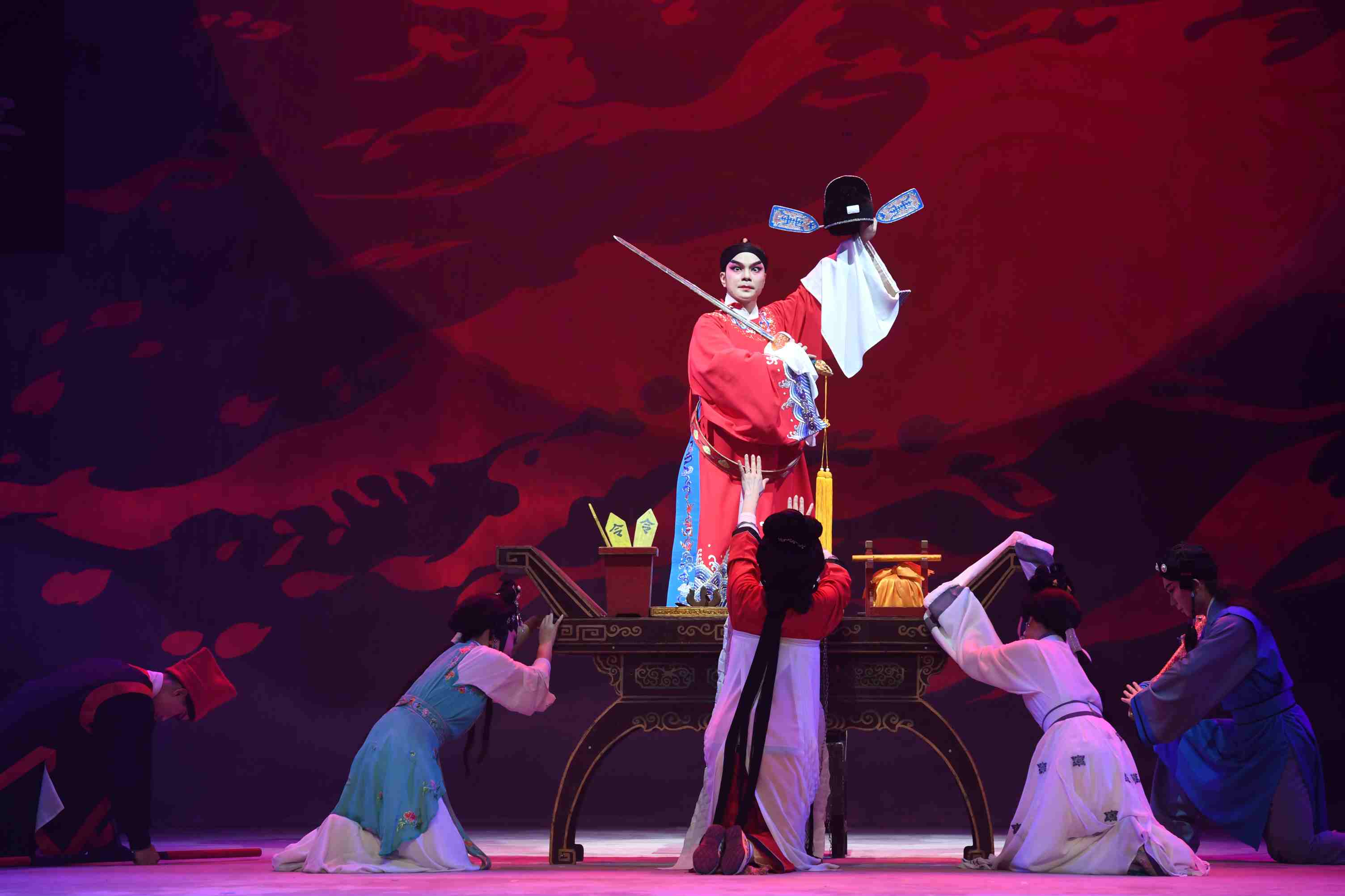 而在11月7日上演的《血溅乌纱》中,刘建科以官生形象生动地演绎了爱民清官严天民,并在戏中展示了专程远赴山西学习的“帽翅功”, 赢得观众阵阵掌声。
