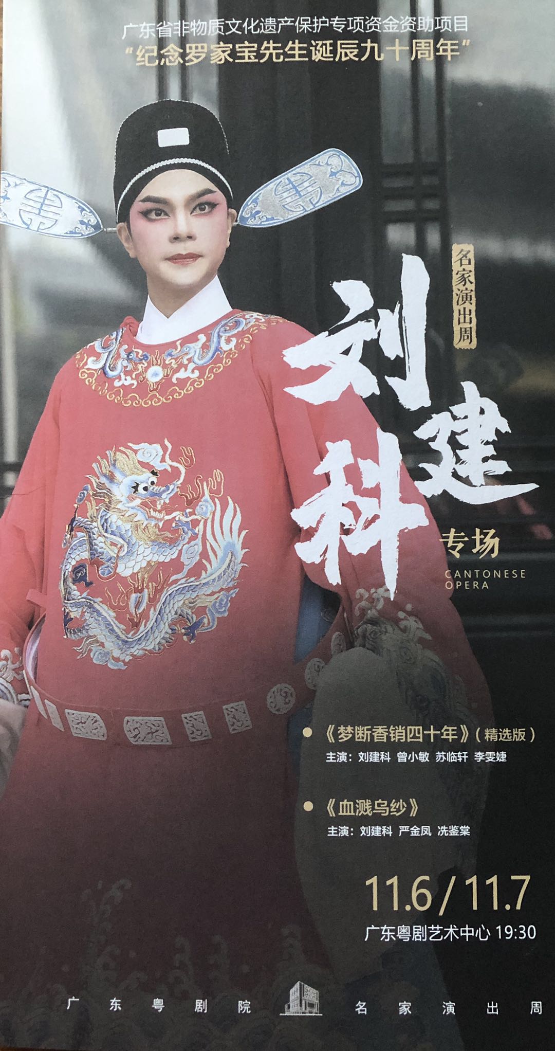 为纪念粤剧一代宗师罗家宝诞辰九十周年,向经典致敬,11月6日、7日晚,广东粤剧院“名家演出周”刘建科专场在广东粤剧艺术中心上演,国家一级演员刘建科联袂曾小敏、冼鉴棠、严金凤、苏临轩、李雯婕、何华亮等粤剧名家、新秀为戏迷献上其师父粤剧大师罗家宝的代表作——经典粤剧《梦断香销四十年》和《血溅乌纱》。