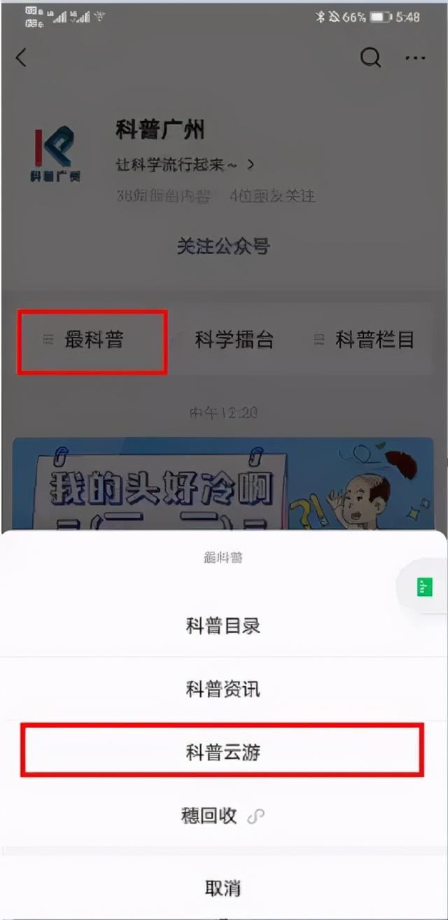 点击菜单栏“最科普”-“科普云游"