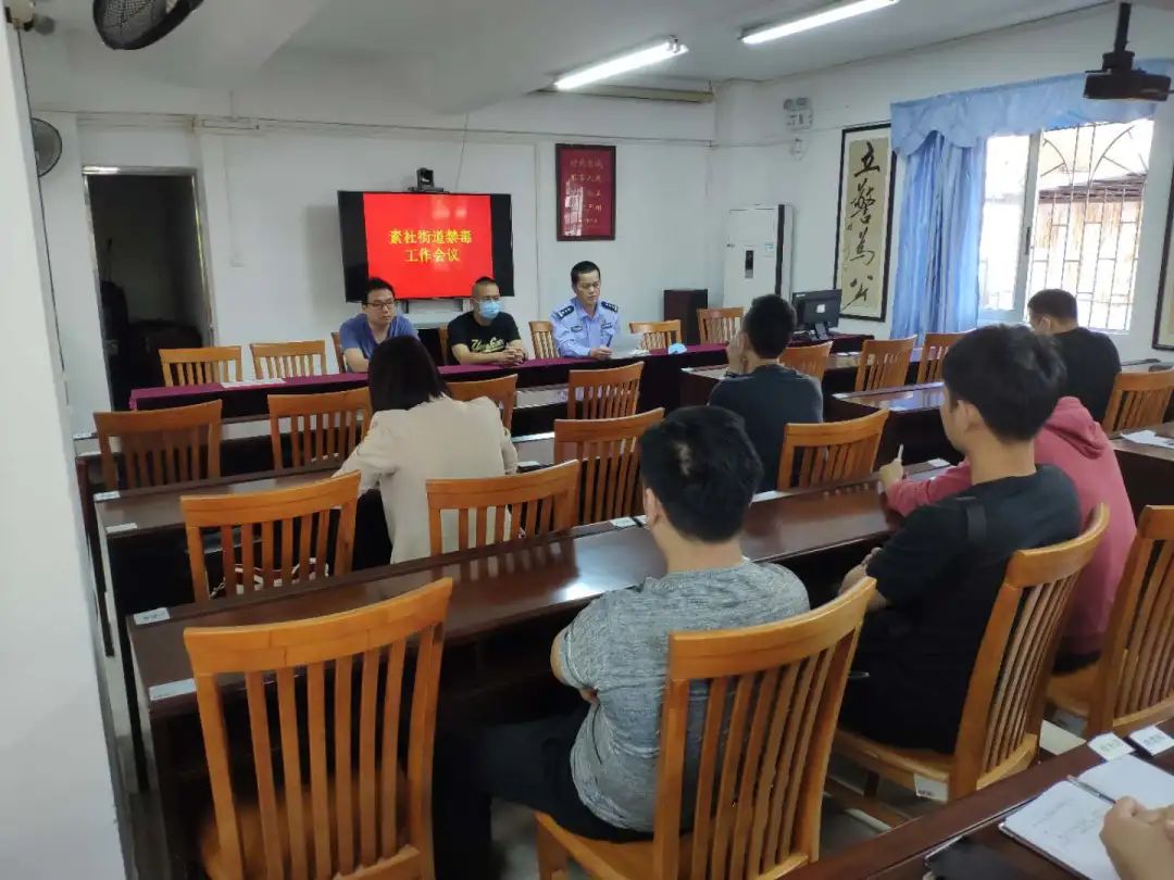 派出所分管副所长及禁毒办工作人员分别就目前辖区毒情形势的严峻性及禁毒知识进行讲解。