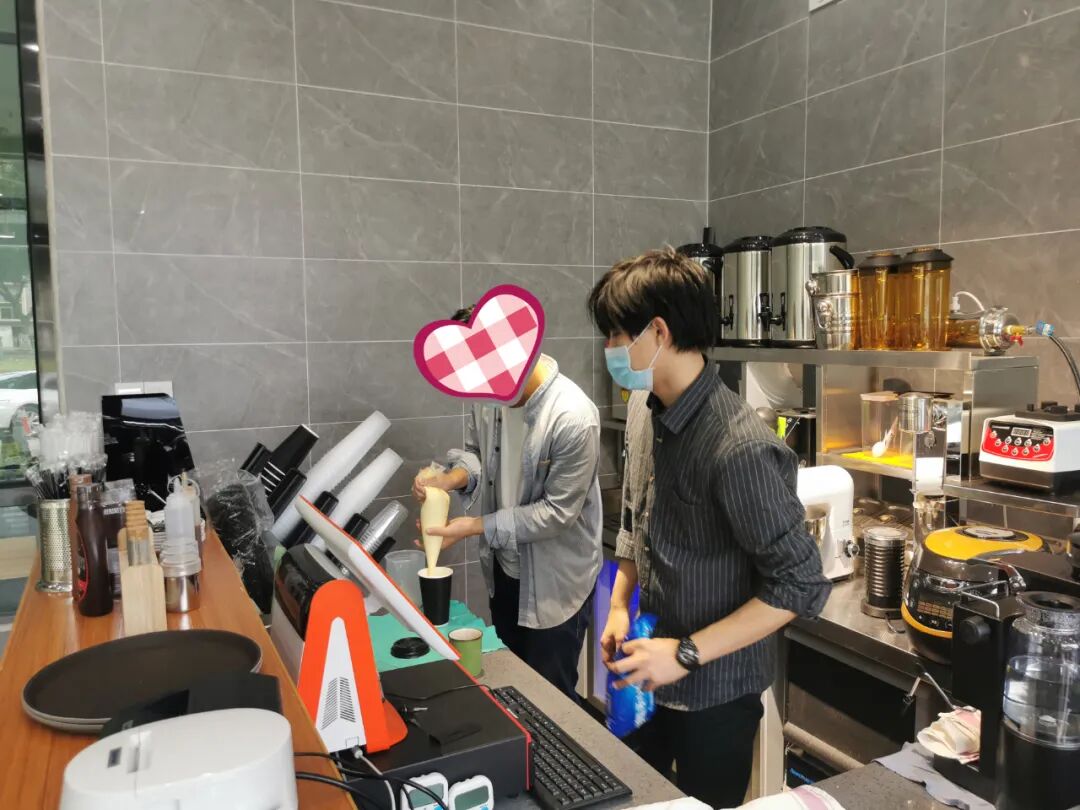 与子明一样,阿坤(化名)也是精神康复者,在“壹心”茶饮店工作。面对“娘家人”员村街残联工作人员,他热情地冲泡了一杯奶茶。