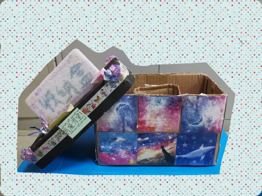 作品介绍:收纳盒对于我们小孩子来说,具有很重要的意义,他们当中有大部分人都比较多细小的东西,会把自己的房间会弄得乱七八糟,小东西挥洒到家的每一个角落,这时候,制作一个收纳盒,变废为宝,把小物件放在里面,容易找到自己的小物件,收纳盒也能让他们的房间更整齐。